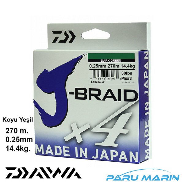 Daiwa J-Braid x4 Koyu Yeşil 270 Mt. 0.25mm 14.4kg. İp Misina