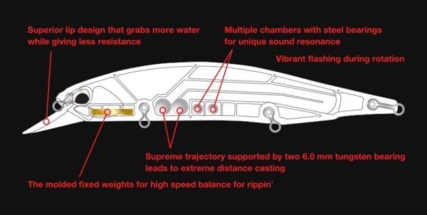 Ses Performansı: Kullanılan volfram bilyeler, hareket eden ağırlık olarak alçak perdeli bir ses yaratır, öte yandan çelik ve çıngırak bilyeleri yüksek perdeli bir ses iletir. Bu çift ses sistemi balıklara çok cazip gelmektedir.