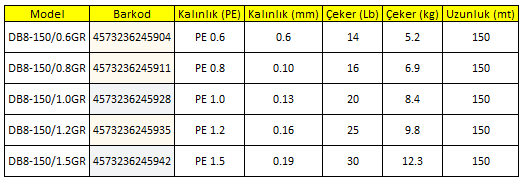 - Kalınlık : PE 1.2 / 0.16 mm.